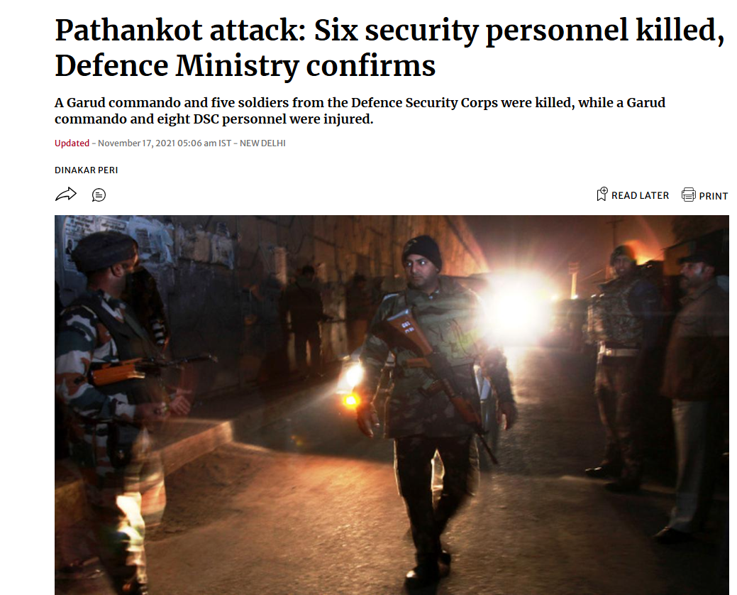 - (如上图新闻所示,2021年11月发生的帕坦柯特空军基地恐袭案中有6名守备军人员被打死。)