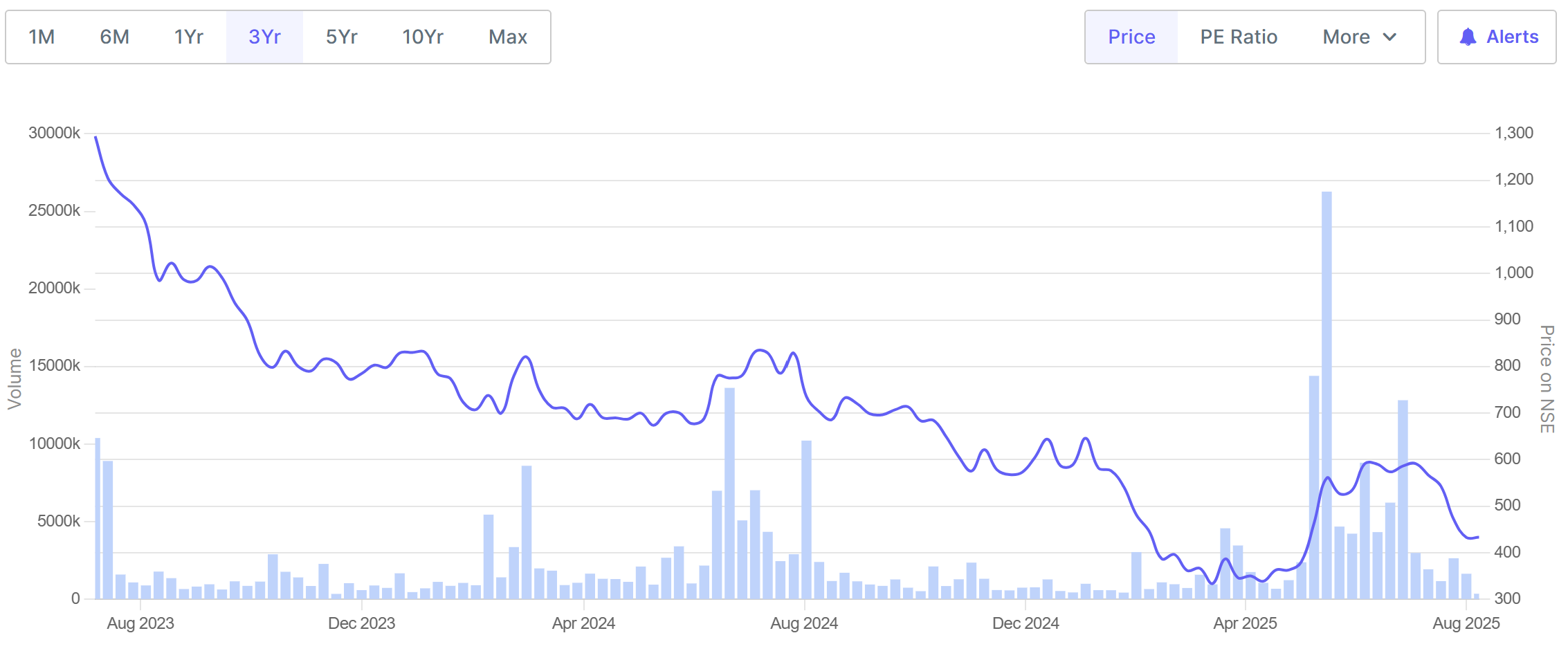 - 当前该公司股价技术指标显示其RSI(14)为41.688,低于50,表明股票处于熊市动能,可能被低估。MACD(12,26)为-6.12,显示短期移动平均线低于长期移动平均线,发出卖出信号。这与近期股价下跌趋势一致,预示股价短期可能继续承压,显示印度投资者对该公司的持续看空。